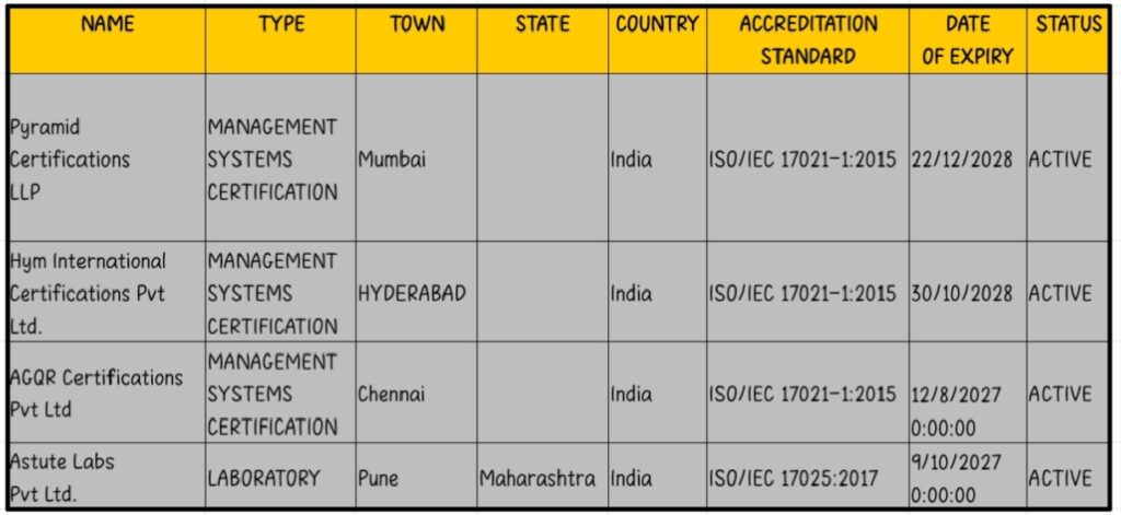 Explore the accreditation details and official documentation for certification bodies operating in this country. GBAR ensures each accredited body meets international standards of quality, competence, and reliability.