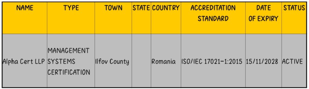 Explore the accreditation details and official documentation for certification bodies operating in this country. GBAR ensures each accredited body meets international standards of quality, competence, and reliability.